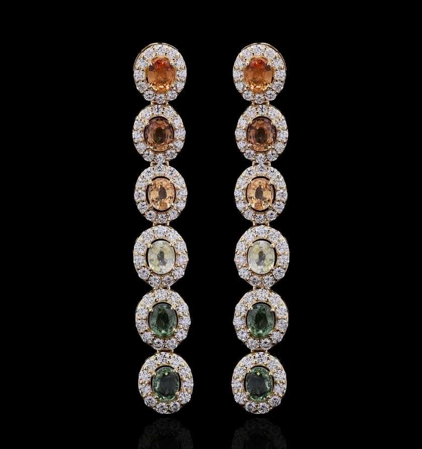 Multi Sapphire Diamond Gold Statement Earrings