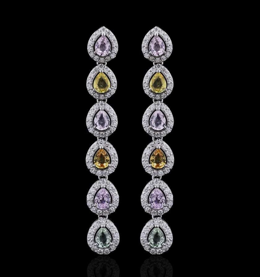 White Gold Multi Sapphire Diamond Luxury Earrings